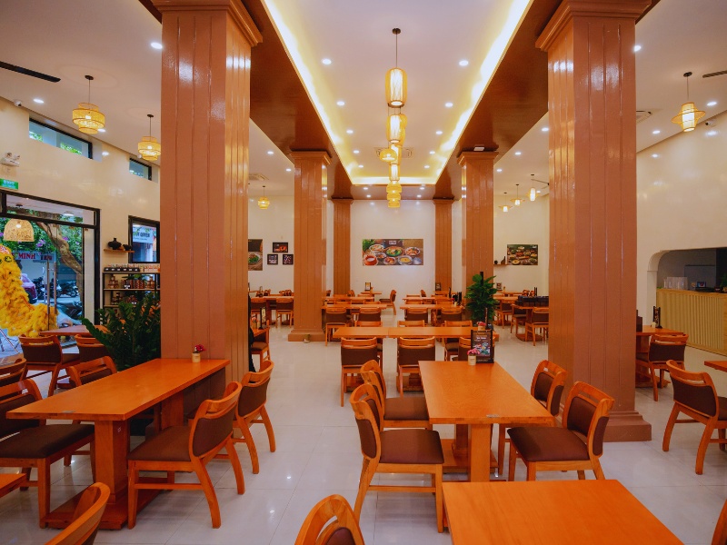 Không gian bên trong của nhà hàng cơm niêu Thiên Lý với thiết kế sang trọng và thoáng mát