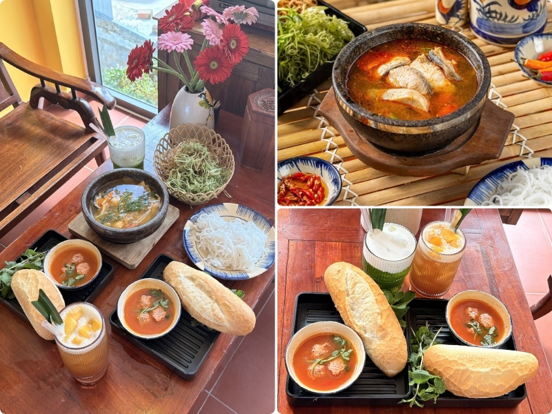 Bữa sáng với món bún cá tầm và bánh mì xíu mại tại Tiệm Đón Gió Đà Lạt
